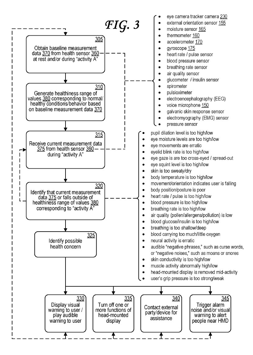 Da es dann aber nur ein Hinweis auf Motion Sickness ist und nicht hilft diese zu vermeiden, entscheidet die Brille automatisch, welche Funktionen es vom VR Headset kurzzeitig deaktiviert bis es dem Träger wieder besser geht. Um welche Funktionen es sich hier handelt, geht aus dem Patentantrag nicht hervor. Zu vermuten ist aber die Reduzierung der Sichtfeldweite oder direkte Eingriffe in das Spiel wie die Deaktivierung der flüssigen Fortbewegung.
