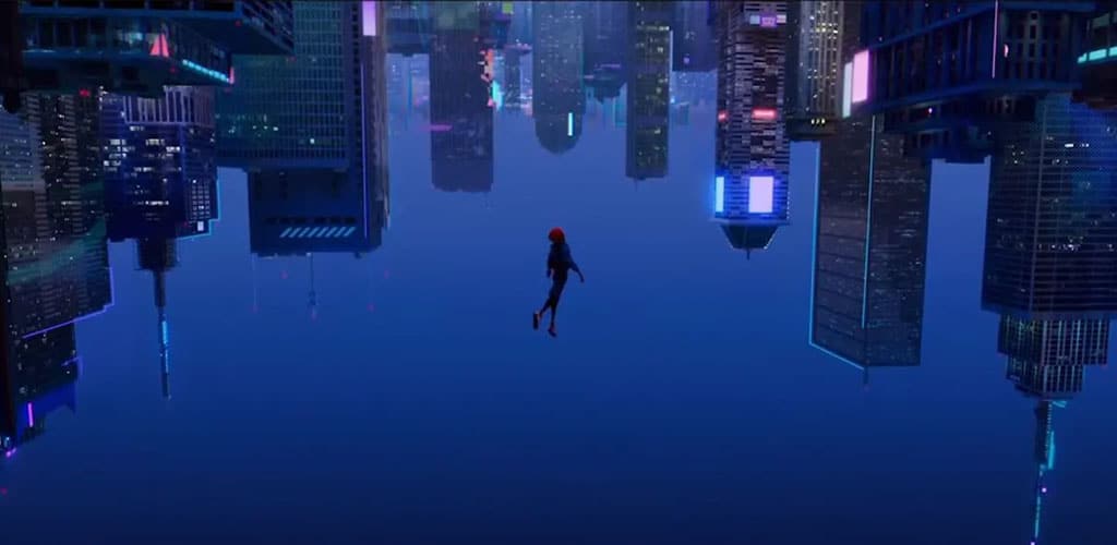 In der Szene macht Miles Morales einen Sprung vom Hochhaus, als Teil seiner Transformation, um die Verantwortung und die Kräfte zu übernehmen.
