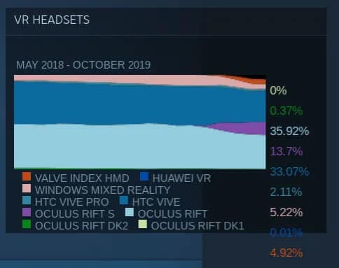 Schaut man sich aber nun die VR Nutzer bei Steam an, so hat sich von den Positionen nicht viel getan. Die einen haben ein bisschen beim Marktanteil gewonnen die anderen ein bisschen verloren.